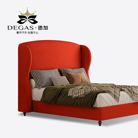 Cao cấp sang trọng phong cách Pháp vải đỏ đôi người lớn nội thất phòng ngủ giường khung thiết kế hiện đại nhà khách sạn khung giường