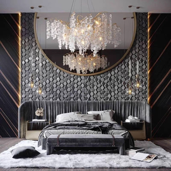 Nội thất phòng ngủ sang trọng sang trọng hiện đại với sơn kim loại vàng sang trọng Bảng gỗ khung giường mềm nâng nhà