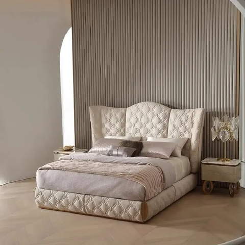 Ý Khách Sạn Sang Trọng Đồ Nội Thất Ánh Sáng Vua Kích Thước Giường Bọt Nệm Đôi Phòng Ngủ Da Nhung Vải Bọc Cho Nhà Biệt Thự